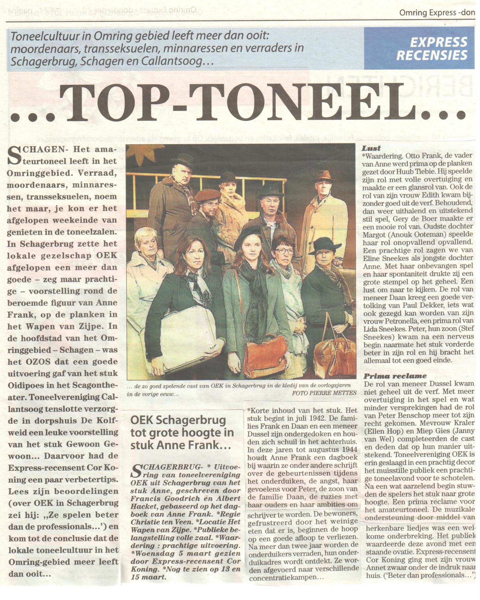 Het stuk begint in juli 1942. De Joodse families Frank en Van Daan zijn ondergedoken en houden zich schuil in het Achterhuis, aan de Prinsengracht in Amsterdam. Anne Frank, de 13-jarige dochter van Otto en Edith, ziet het als een groot avontuur. Ze is een onbevangen jong meisje dat haar mening niet voor zich houdt. Ze wekt al snel irritatie op bij de anderen. Zelf vindt ze sommigen van de medebewoners ook maar niets. Zo kan ze aanvankelijk niet goed overweg met Peter, de 16-jarige zoon van Petronella en Hans van Daan. Hiermee begint een periode van bijna twee jaar, waarin irritaties en emoties hoog oplopen met veel mensen in een kleine ruimte. Bovendien is er de constante angst voor verraad en opgepakt te worden door de Duitsers. De bewoners raken na verloop van tijd gefrustreerd door het weinige eten dat ze hebben. Daarnaast beginnen ze hun hoop op een goede afloop te verliezen. De sfeer in het huis wordt slechter, totdat het nieuws komt dat D-Day nabij is. Helaas komt de bevrijding voor hen te laat, ze worden voor die tijd verraden en afgevoerd naar verschillende concentratiekampen. Otto Frank is de enige van het gezelschap die de gruwelen overleeft.