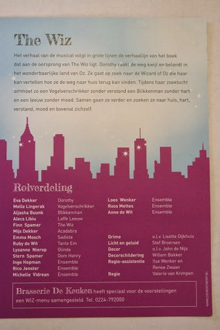Het verhaal van de musical volgt in grote lijnen de verhaallijn van het boek dat aan de oorsprong van The Wiz ligt. Dorothy raakt de weg kwijt en belandt in het wonderbaarlijke land van Oz. Ze gaat op zoek naar de Wizard of Oz die haar kan vertellen hoe ze de weg naar huis terug kan vinden. Tijdens haar zoektocht ontmoet ze een Vogelverschrikker zonder verstand een Blikkenman zonder hart en een leeuw zonder moed. Samen gaan ze verder en zoeken ze naar huis, hart, verstand, moed en bovenal zichzelf